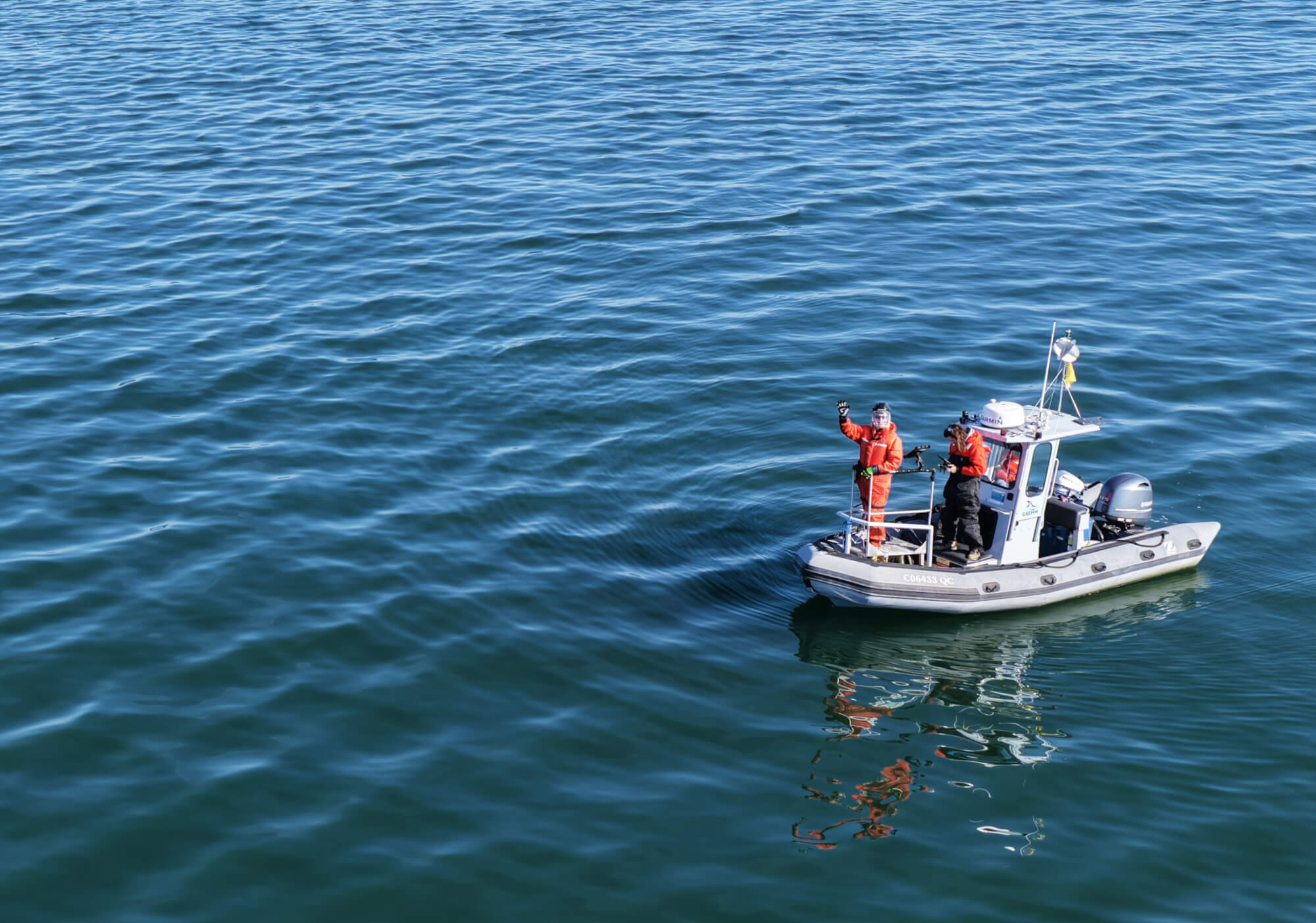 Pour finir, ce que j’aime beaucoup dans mon travail, c’est le travail d’équipe sur le bateau de recherche que l’on doit avoir pour réussir à capter de superbes images. On doit avoir une bonne communication pour coordonner le travail, par exemple, les manipulations du drone, le positionnement du bateau avec le vent et courant pour prendre de belles photos horizontales, etc.
