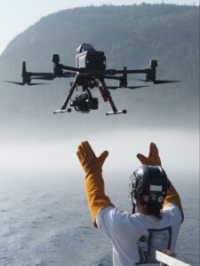 Au cœur des opérations de construction en mer, vous serez les yeux et les oreilles pour évaluer la présence et le comportement de la faune marine. Au Québec, le Réseau d’observation de mammifères marins (ROMM) offre la formation OMM-SAP, adaptée aux eaux canadiennes. Entre théorie et pratique, celle-ci octroie des connaissances sur l’identification et la biologie des mammifères marins. Donnant une base importante dans ce domaine, le cours n’est toutefois pas obligatoire. Les tâches du poste sont simples : surveiller la présence d’espèces ciblées dans une zone délimitée, prévenir l’entrepreneur des mesures d’atténuation à respecter et documenter le déroulement des travaux et la présence de certains cétacés durant sa surveillance. Dehors pendant des journées entières, tu dois être prêt·e à affronter tout type d’intempéries.