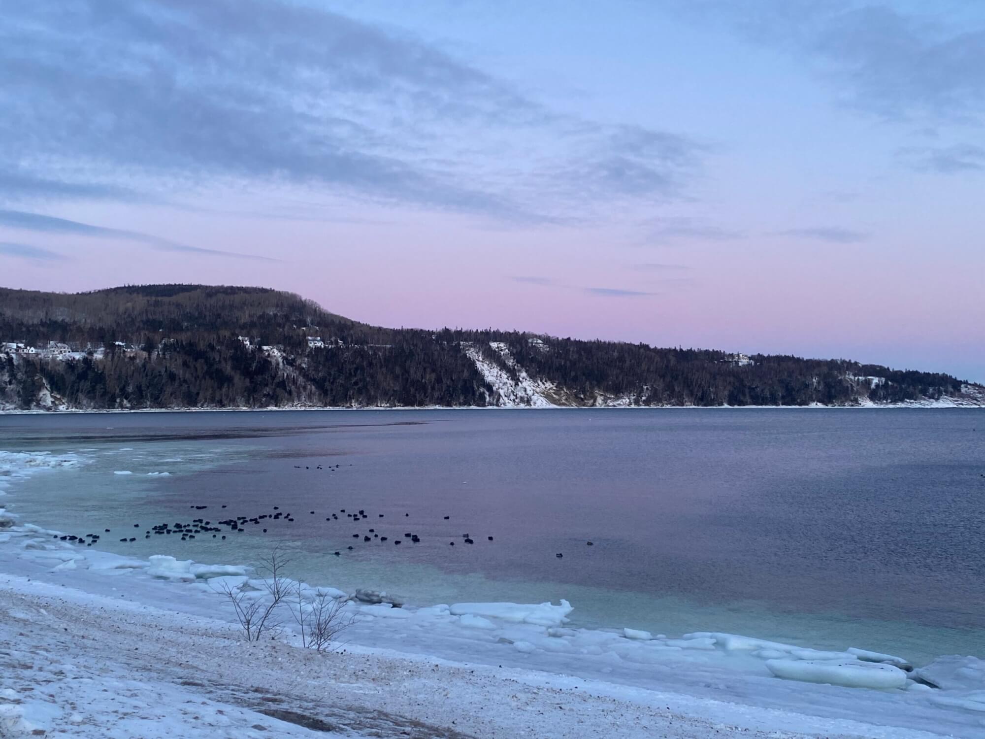 Le soleil perce le ciel bleu sans nuages qui surplombe Tadoussac en ce début février. Depuis les fenêtres des bureaux de l’équipe de Baleines en direct, on aperçoit les glaces scintillantes qui descendent la rivière Saguenay, de même que celles qui se forment un peu plus loin, sur le Saint-Laurent. Sans surprise, des phoques sur la banquise sont signalés à quelques endroits! Côté baleines, plusieurs bélugas semblent avoir été vus dans l’estuaire, alors qu’un souffle mystérieux s’élève des eaux en Gaspésie.