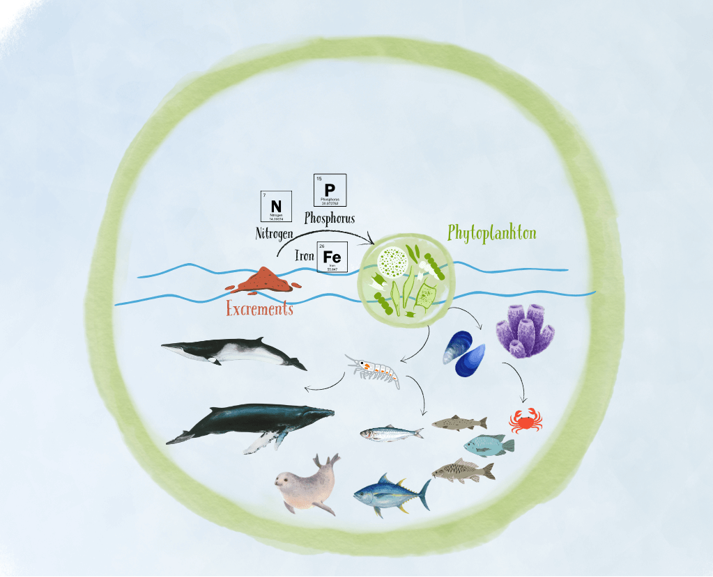 Whales play a crucial role in ecosystems. By defecating at the surface—where microscopic phytoplankton resides—whales release a wealth of nutrients. Rich in phosphorus, nitrogen, and iron, their excrement nourishes the phytoplankton, which in turn proliferates to feed the rest of the food chain: zooplankton and all its predators, including fish, squid, and seabirds.